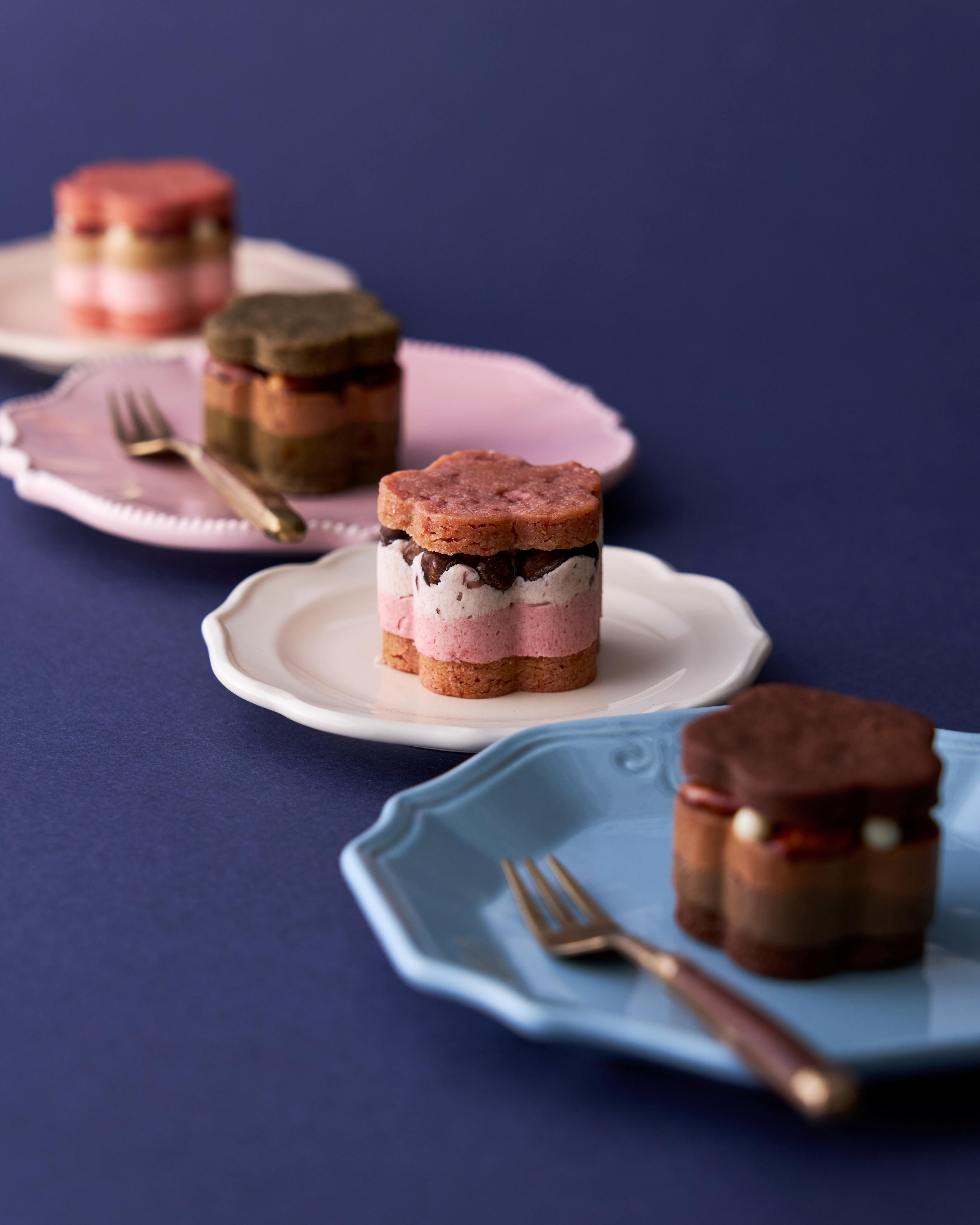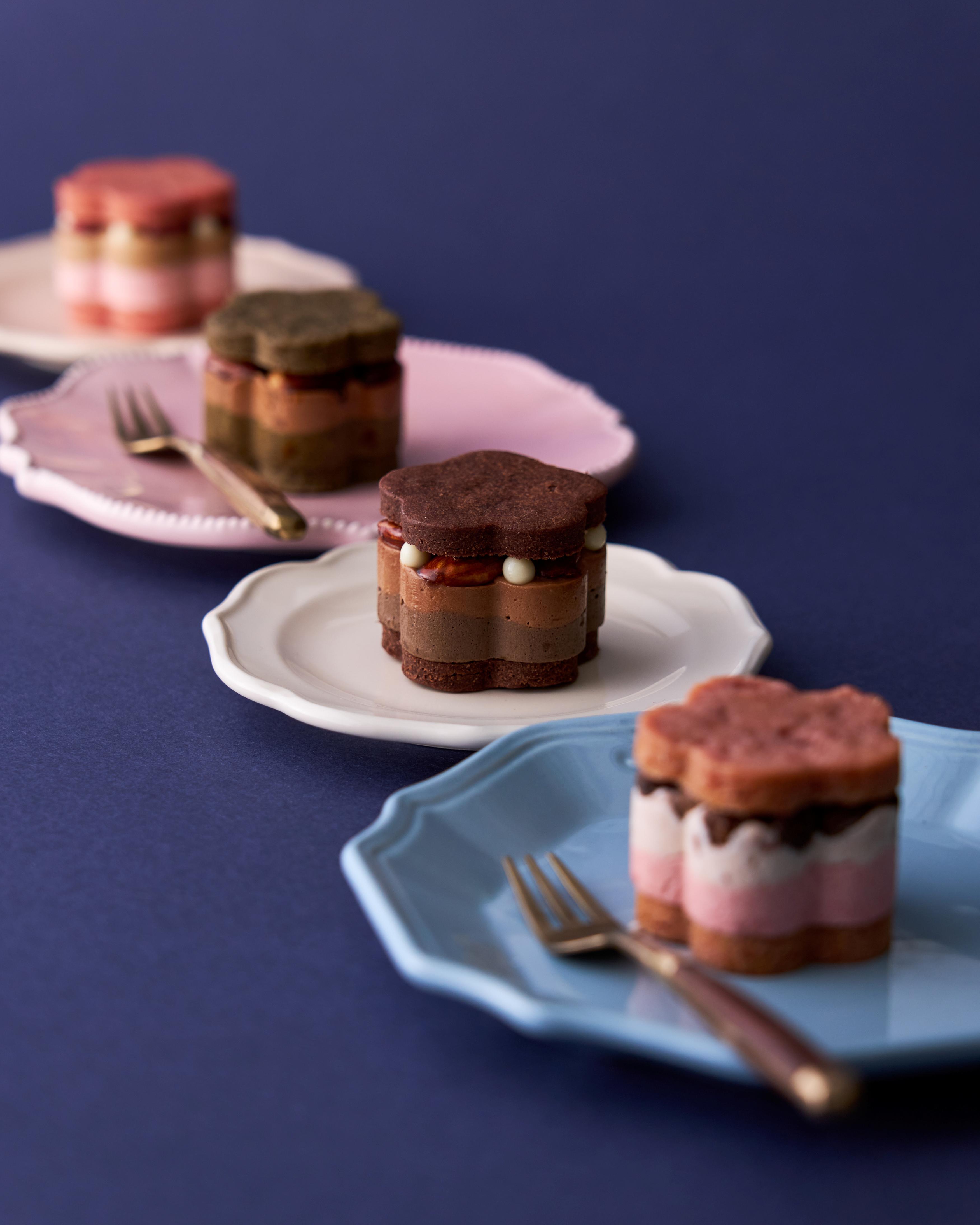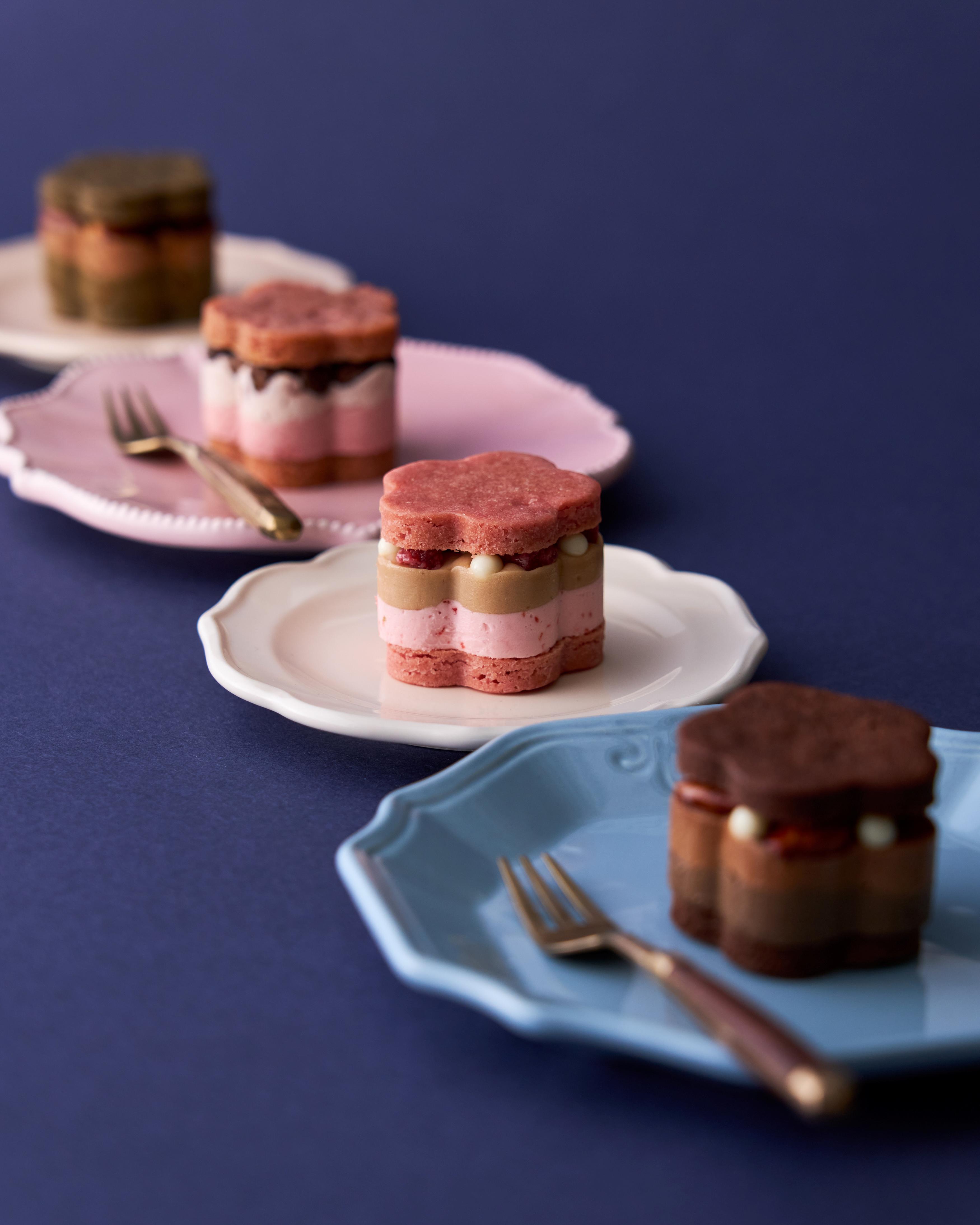 ピンクとチョコが交互に並ぶ4つの調べは、まるで“甘さと香ばしさ”が手を取り合うように、見る人にも、贈る人にも、やさしい微笑みを届けます。