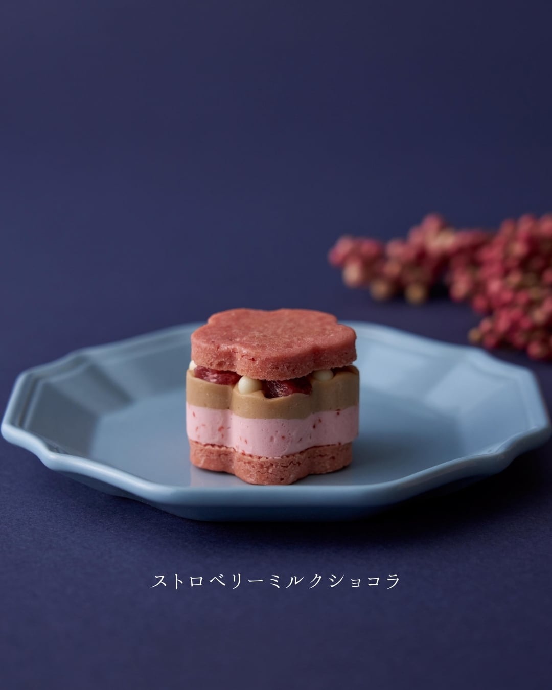 ストロベリーミルクショコラは、ミルキーな甘さと苺の華やぎが溶け合う王道の組み合わせ。