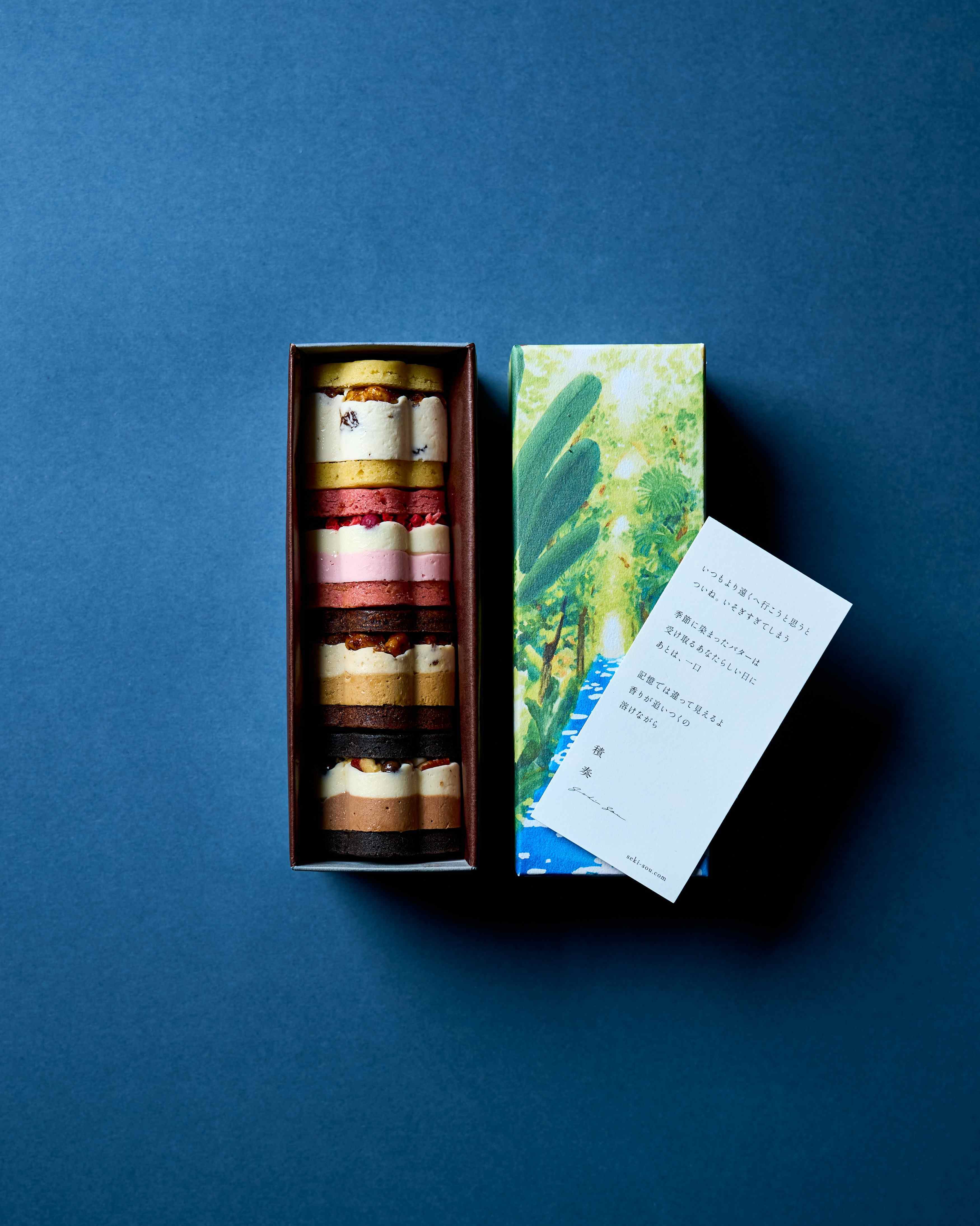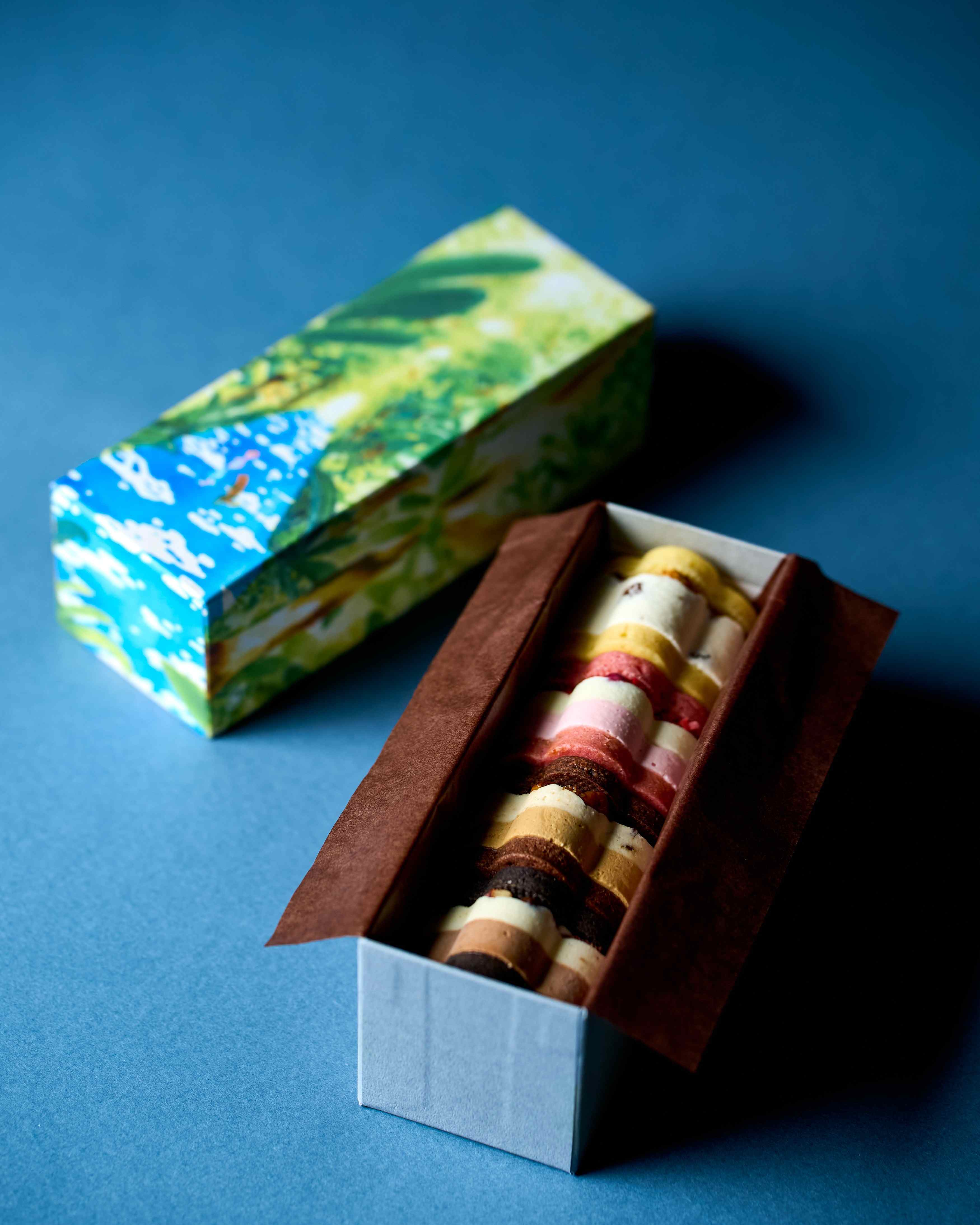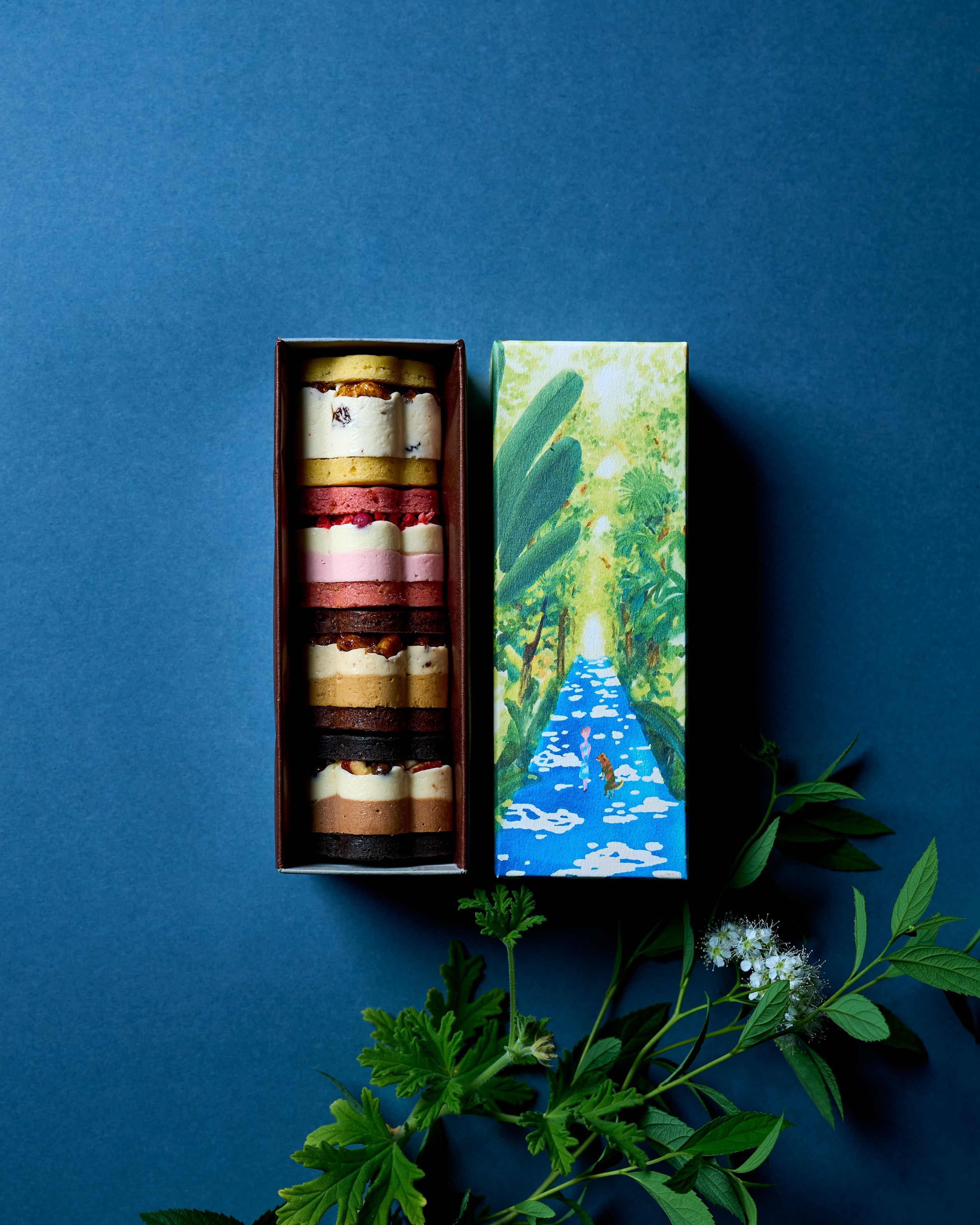 風に揺れる木々のように軽やかな香りと味わいが広がる、4種類のバターサンドを詰め合わせた贅沢なセット。ラムレーズングラッセの深い風味と甘さ、フレーズショコラブランの優しい苺とホワイトチョコのハーモニー、キャラメルウォールナッツの香ばしいナッツの食感、そしてショコラバナーヌペカンのリッチなバナナとピーカンナッツの組み合わせ。風のように軽やかでありながら、しっかりとした味わいが広がる、上質なティータイムや大切な人への贈りものに最適なセットです。