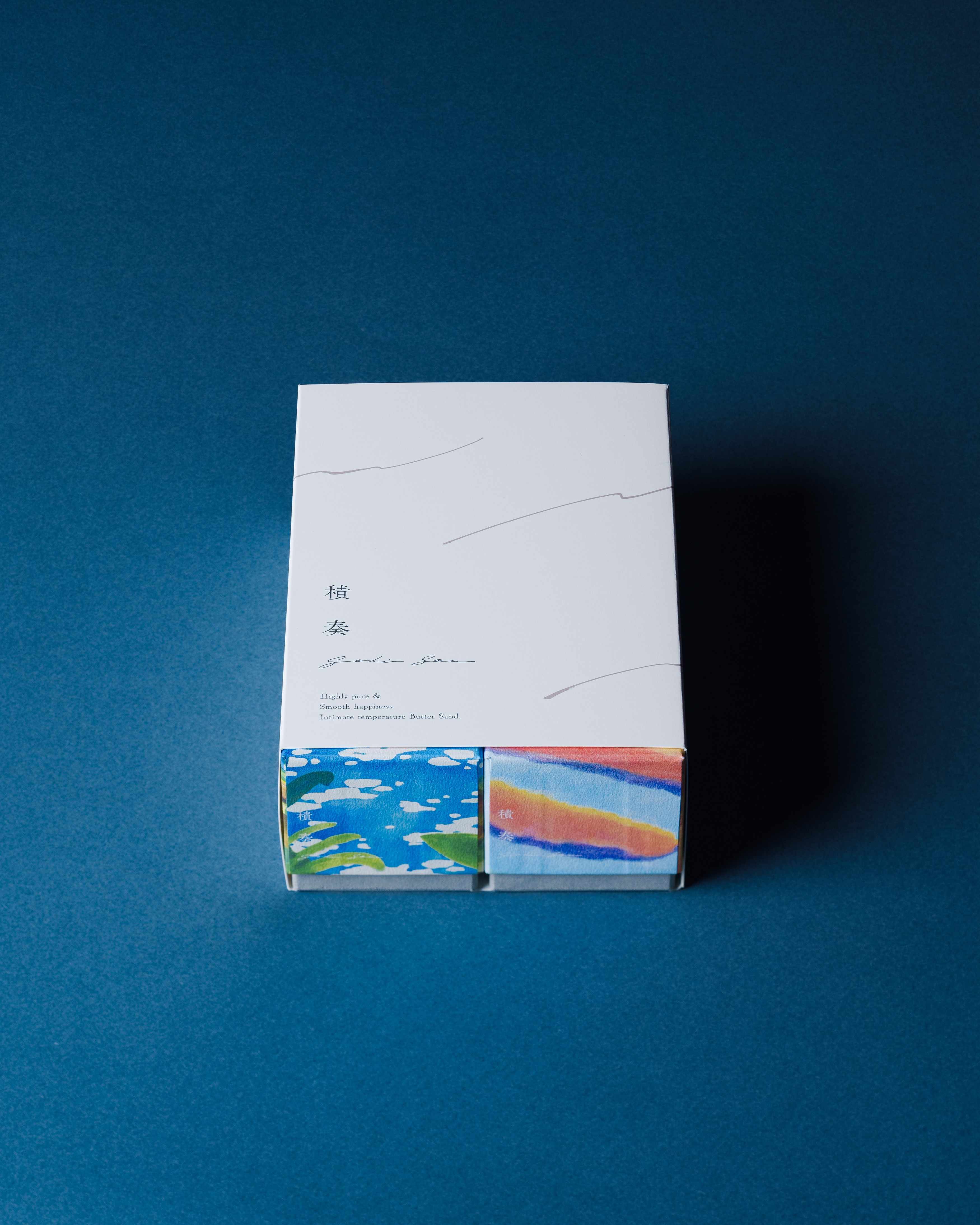 積奏バターサンド専用のボックスには、箱内部の底面に保冷剤を入れる仕様になっています。お届けの際には、保冷剤を入れた状態で発送いたします。手土産などの際には、保冷剤を再度冷凍いただき底面に入れていただくと、約1時間保冷効果があります。