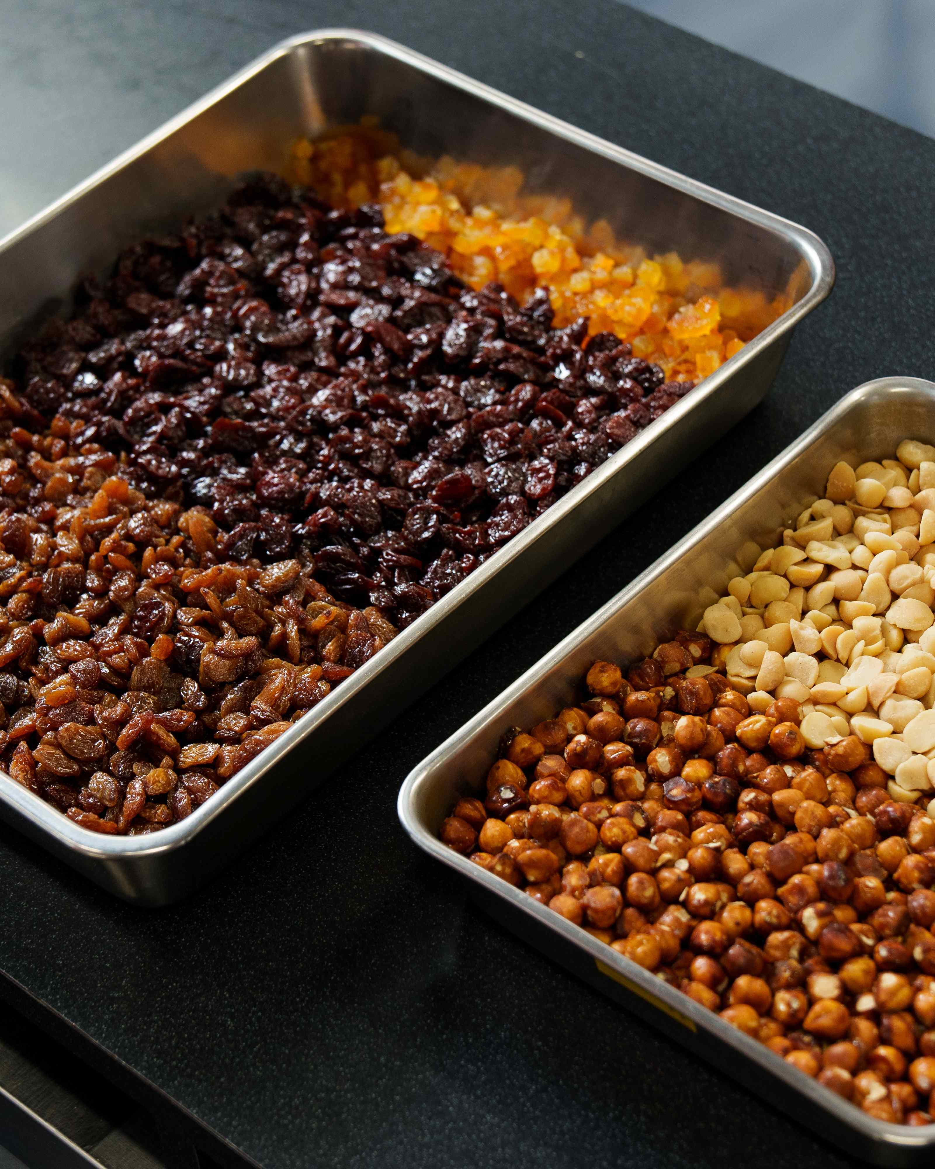 小麦粉(国内製造)、無花果、カシューナッツ、ヘーゼルナッツ、オレンジピール、生乳、砂糖、チョコレート(乳成分を含む)、バター、アーモンド、ラム酒、リキュール、キャラメルパウダー、パン酵母、カルダモンパウダー、シナモンパウダー