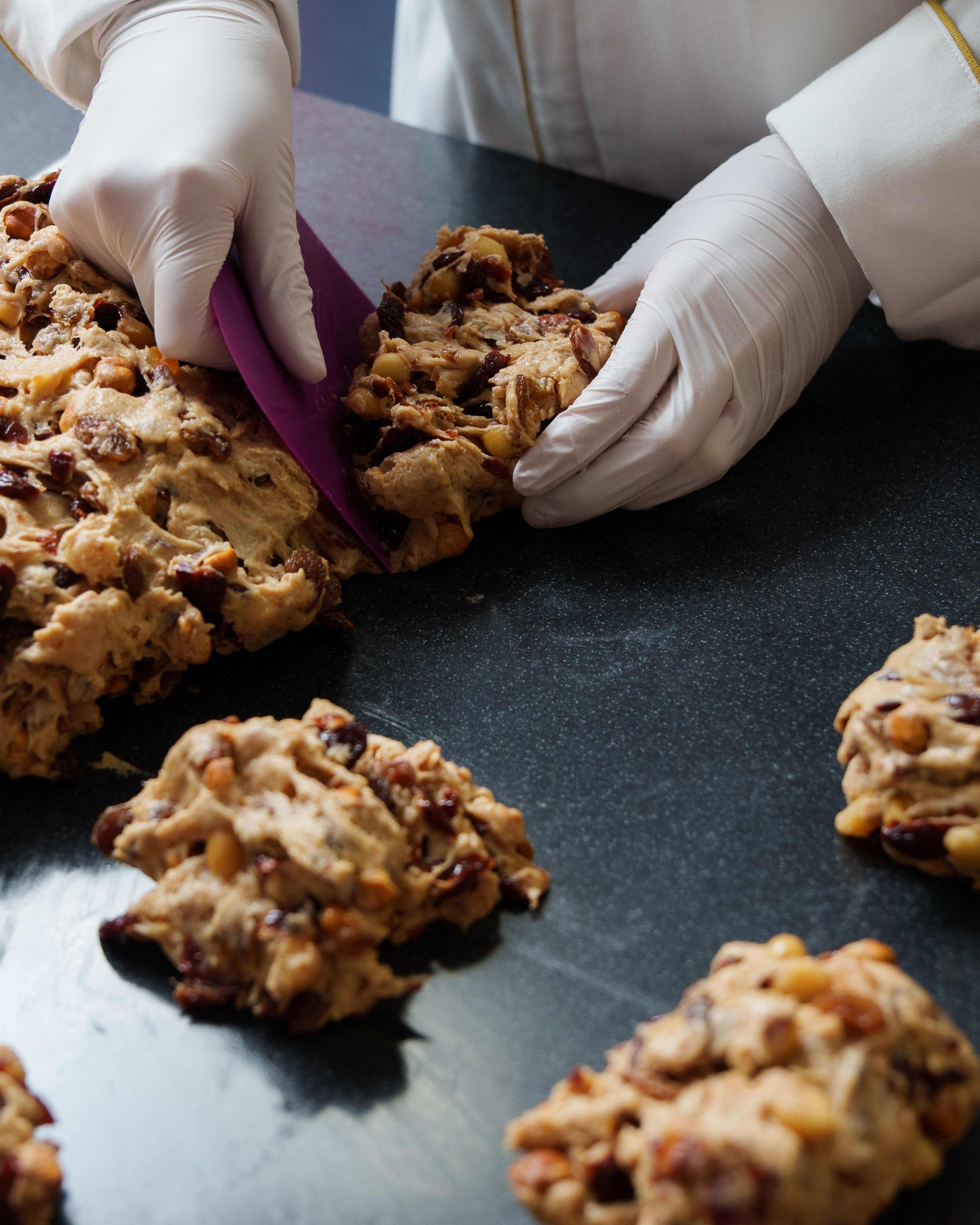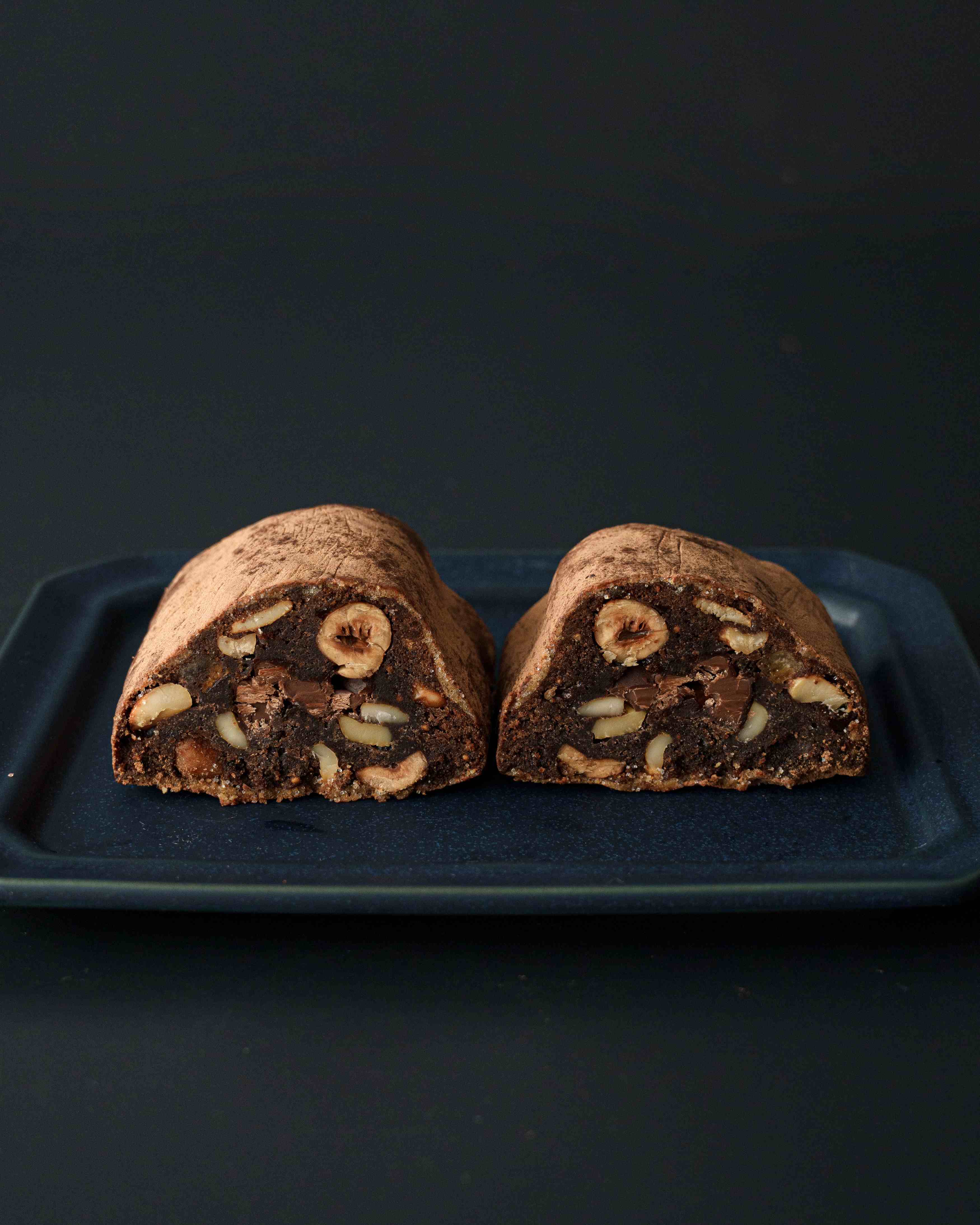 焦がしキャラメルの深いコクとクーベルチュールチョコレートの濃厚な風味が織りなす生地に、キャラメリゼしたヘーゼルナッツとローストカシューナッツの香ばしさがアクセントに。