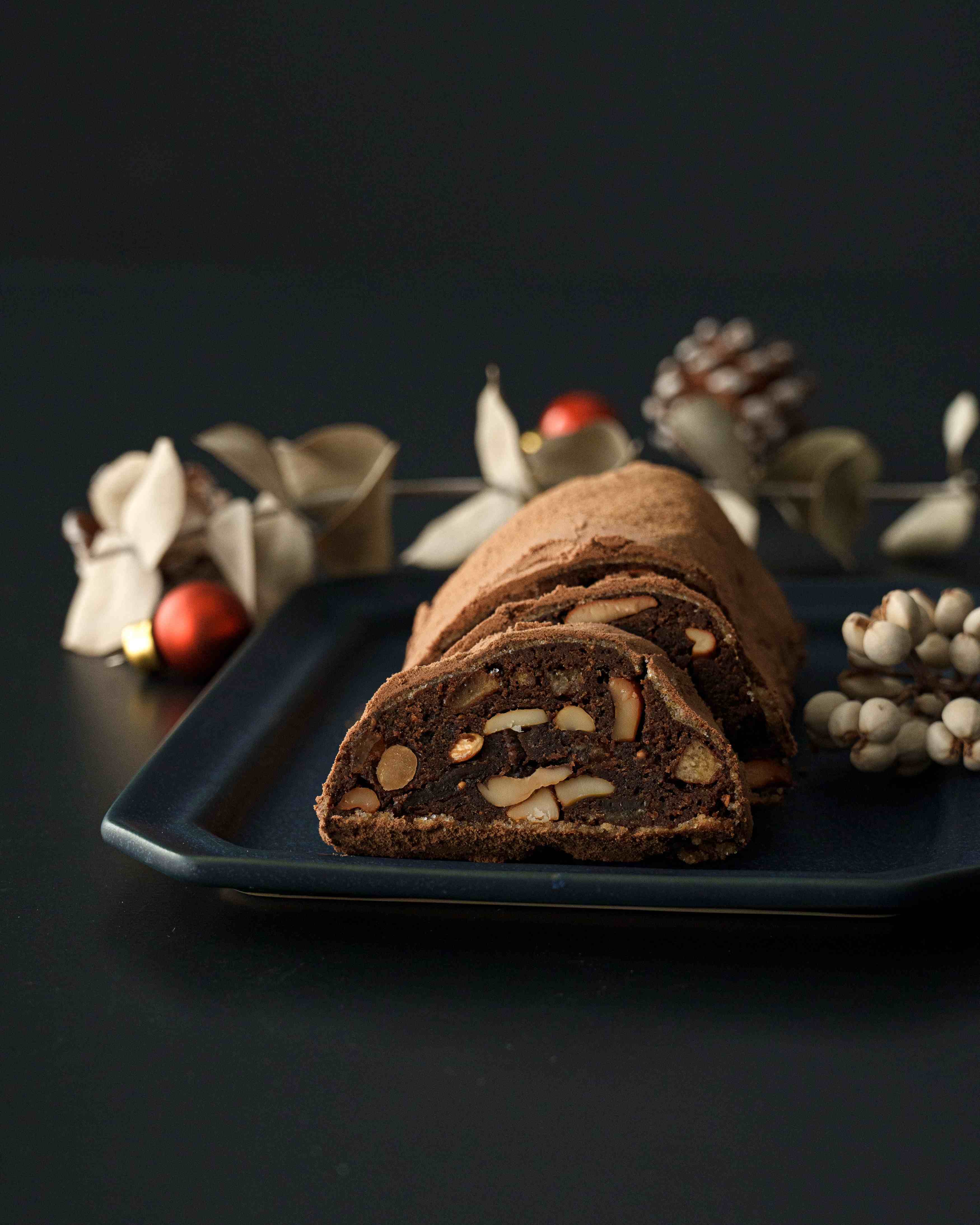 伝統にとらわれない自由な発想で生まれたキャラメルショコラシュトレン。ビターショコラの深みとキャラメルの甘みが絶妙に重なり合い、フルーツの凝縮された風味とナッツの食感がアクセントとなっています。一口ごとに広がる贅沢な味わいが特別なひとときを演出します。ホリデーシーズンの贈り物や、自分へのご褒美としてもぴったりの逸品です。